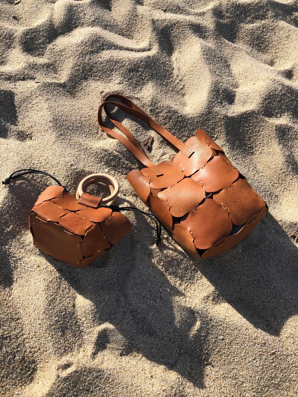 적당히 하드한 텍스처의 가죽과 나무핸들의 질감이 어우러져